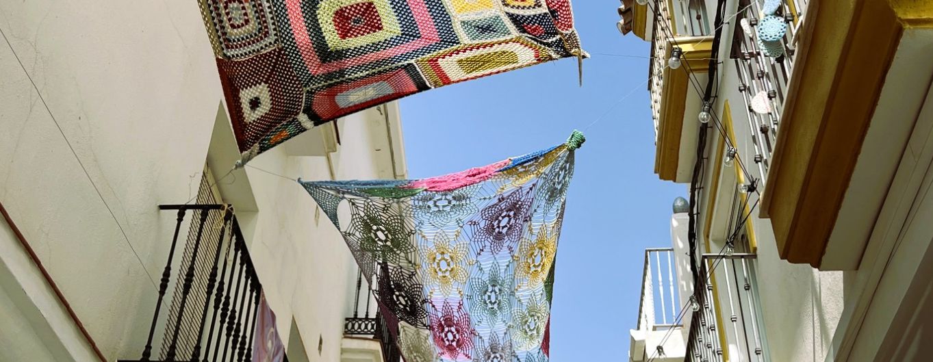 Manchmal sind es die kleinen, unerwarteten Augenblicke, die uns am meisten berühren. In Casarabonela, einem kleinen andalusischen Ort, war ich mitten in eine Fiesta geraten. Über den Straßen, zwischen Balkonen und auf den Plätzen spannten sich bunte Häkelarbeiten – kunstvoll, liebevoll, fast schwebend im warmen Licht.